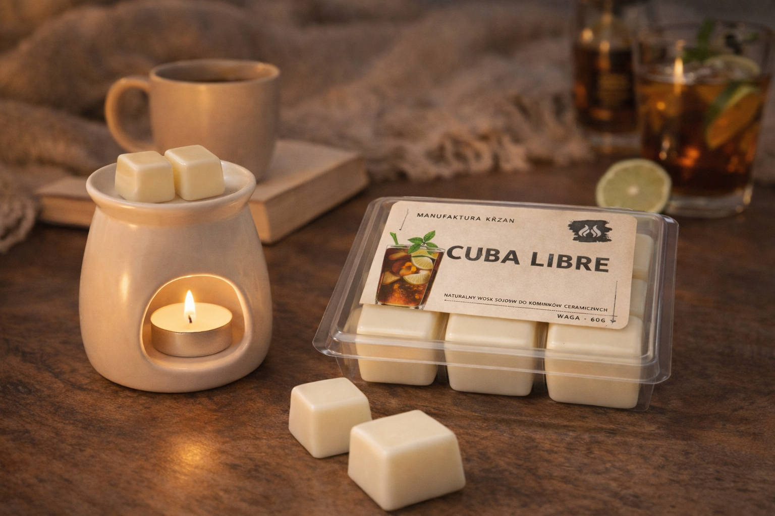 Naturalny wosk sojowy do kominków ceramicznych o zapachu Cuba Libre. Energetyczne nuty limonki, ciepły rum i delikatna słodycz coli tworzą relaksujący, wieczorny klimat. Opakowanie 60 g, wielokrotnego użycia. Idealny do domowego relaksu.